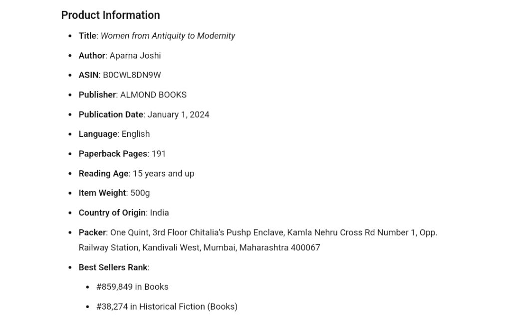 Aparna Joshi’s Women from Antiquity to Modernity is an essential read for anyone interested in the intersection of gender, history, and literature. Through her meticulous research and engaging writing, Joshi brings to light the often-overlooked stories of women in India’s history, offering a fresh perspective on their contributions and the changing nature of gender roles over time. This book is a significant contribution to both historical fiction and feminist literature, and it continues to inspire readers and scholars alike.